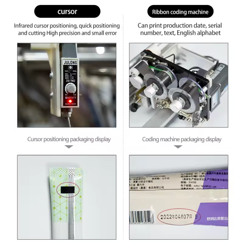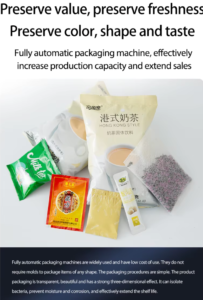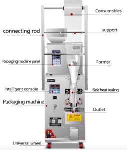 This machine can automatically complete bag making, metering, filling, sealing, cutting, counting, batch number printing and other functions.